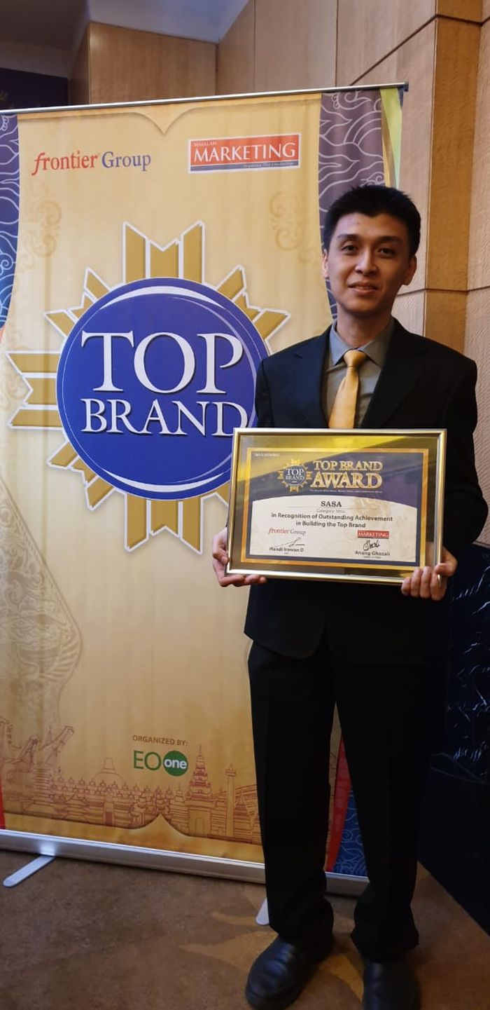 Dua produk Sasa berhasil mendapatkan penghargaan prestisius untuk kategori bumbu penyedap dan kategori Seasoned Flour, dalam acara Top Brand Award 2019, yang dilaksanakan di Hotel Mulia, Jakarta.