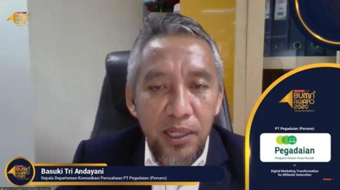 TRIBUNNEWS.COM - PT Pegadaian (Persero) meraih beberapa penghargaan atas kinerja yang dilakukan, satu di antaranya BUMN Award 2020 kategori Digital Marketing Transformation for Milennial Generation dari Warta Ekonomi Jumat (27/11/2020).