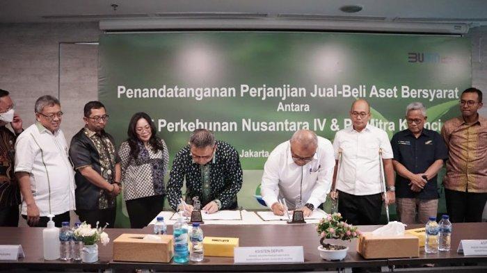 Rencana akuisisi telah diawali dengan penandatanganan perjanjian jual beli aset bersyarat oleh Direktur PTPN IV Sucipto Prayitno yang diwakili SEVP Business Support PTPN IV Budi Susanto dan Direktur PT Mitra Kerinci Arief Maulana Yamin di Gedung Agro Plaza, Kuningan, Jakarta Selatan, pada Rabu (16/11/2022).