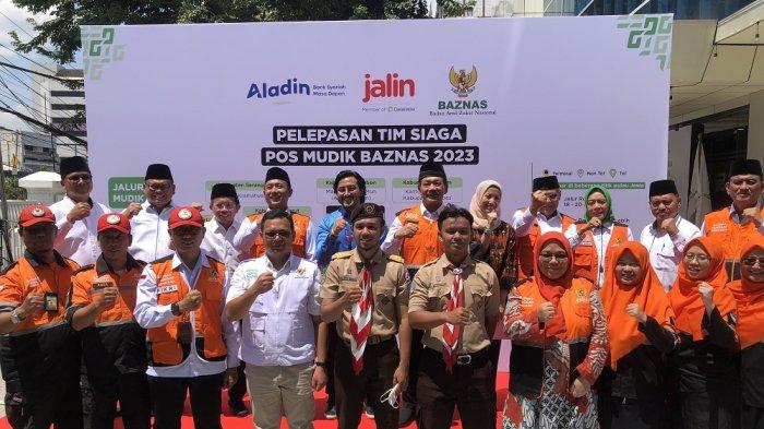 TRIBUNNEWS.COM, JAKARTA - Badan Amil Zakat Nasional (Baznas) melepas secara simbolis Tim Siaga Pos Mudik 2023 resmi diluncurkan di kantor Baznas, Jakarta Pusat, Senin (17/4/2023).