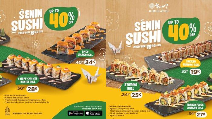 Promo spesial Kimukatsu, berbagai menu sushi diskon hingga 40 persen hanya berlaku untuk pembelian di setiap hari Senin.