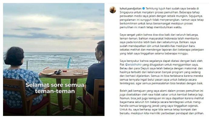 Sebelumnya, Luhut melalui akun Instagram pribadi-nya @luhut.pandjaitan pada Selasa (10/10), menjelaskan bahwa dirinya disarankan oleh dokter untuk beristirahat selama beberapa hari. Kondisi kesehatan Luhut tiba-tiba melemah setelah menghadiri suatu kegiatan.