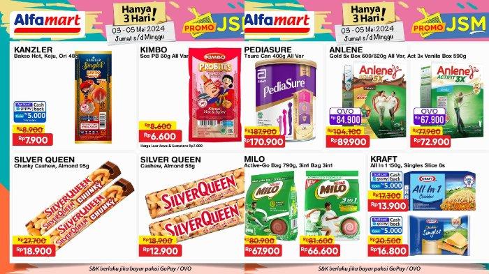 Berikut katalog promo JSM Alfamart Jumat-Minggu 3-5 Mei 2024: Kanzler Rp7.900, Kimbo Rp6.600, Pediasure Rp170.900