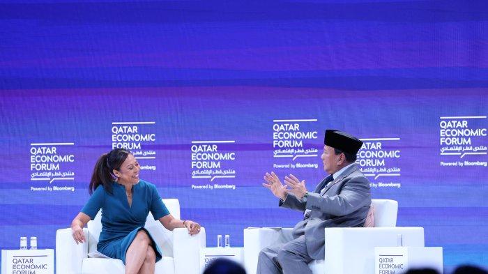 TRIBUNNEWS.COM, DOHA - Presiden Indonesia terpilih periode 2024-2029 Prabowo Subianto didampingi wakil presiden terpilih Gibran Rakabuming Raka menghadiri Qatar Economic Forum di Doha, Rabu (15/4/2024).
