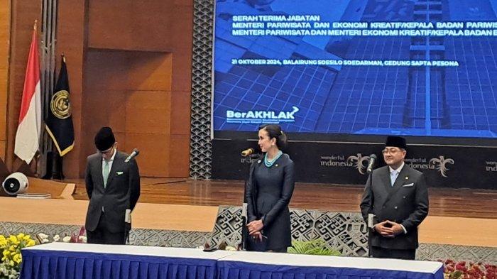 "Oleh karena itu izinkan atas nama Mba Wakil Menteri dan seluruh insan keluarga besar di Pariwisata dan Ekonomi Kreatif mengucapkan selamat datang dan selamat bertugas kepada bapak Menteri dan Ibu Menteri," sambungnya.