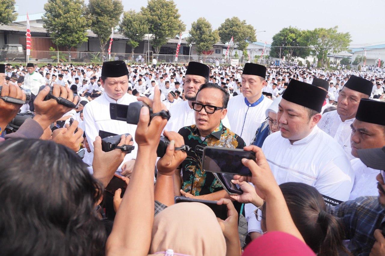 Pria yang akrab disapa Noel itu menghadiri istighosah bersama seluruh pekerja PT Sritex di Sukoharjo, Jawa Tengah.