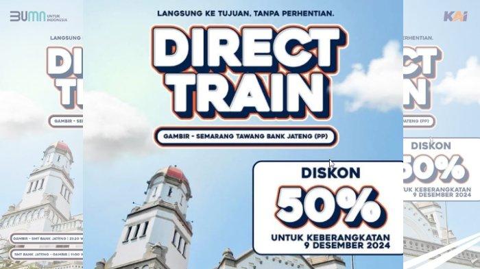 "Catet ya, perjalanan Direct Train ini hanya ada di tanggal 9-10 Desember aja! Dapatkan diskon tarif 50 persen, untuk keberangkatan di tanggal 9 Desember 2024. Kapan lagi bisa dapet tiket kereta cuma 200 ribuan?," lanjut KAI.