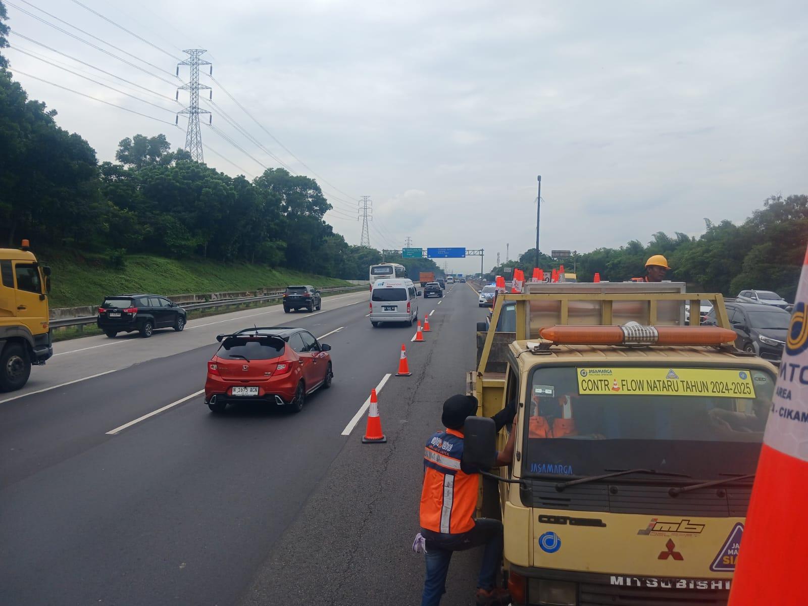 TRIBUNNEWS.COM, JAKARTA -- PT Jasamarga Transjawa Tol (JTT) atas diskresi dari pihak Kepolisian, melakukan rekayasa lalu lintas contraflow arah Cikampek. Hal tersebut untuk mengurai peningkatan volume lalu lintas pada periode Hari Raya Natal 2024 dan Tahun Baru 2025 yang terjadi di Ruas Jalan Tol Jakarta-Cikampek.