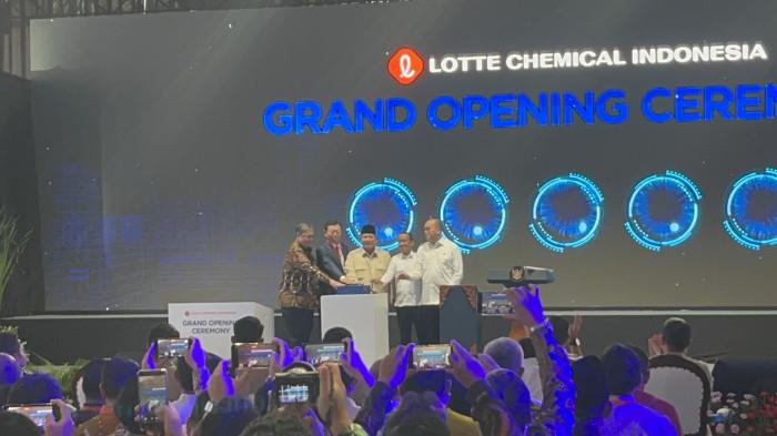 Presiden Prabowo Subianto meresmikan pabrik petrokimia raksasa milik Lotte Chemical Indonesia di Cilegon, Banten, hari ini.
