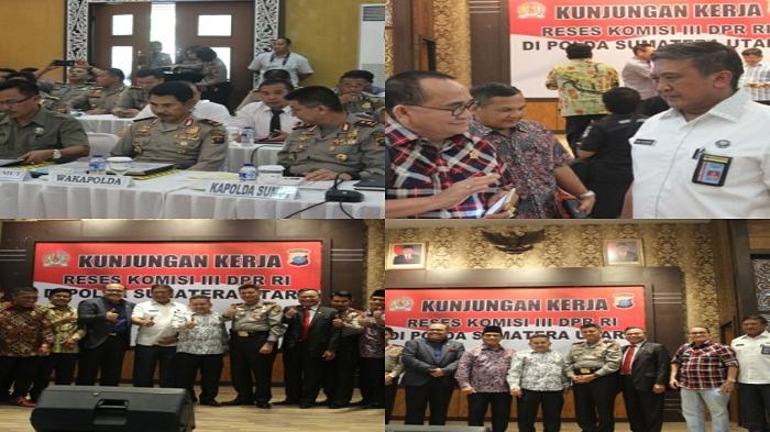TRIBUNNEWS.COM - Dalam rangka masa reses persidangan I Tahun Anggaran 2016-2017,Komisi III DPR RI dengan ketua tim yang juga wakil ketua komisi III Trimedya Panjaitan beserta anggota komisi III lainnya melakukan kunjungan kerja dan rapat dengar pendapat dengan Polda Sumut dan BNNP SUMUT.