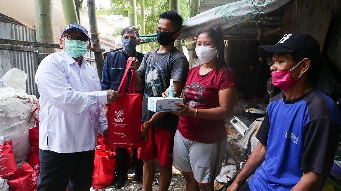 Direktur Jenderal Pemberdayaan Sosial Edi Suharto menyalurkan bantuan sosial sebanyak 30 paket sembako, hand sanitizer dan masker kepada keluarga pemulung di Perkampungan Pemulung Rawamangun yang terdampak Covid-19.