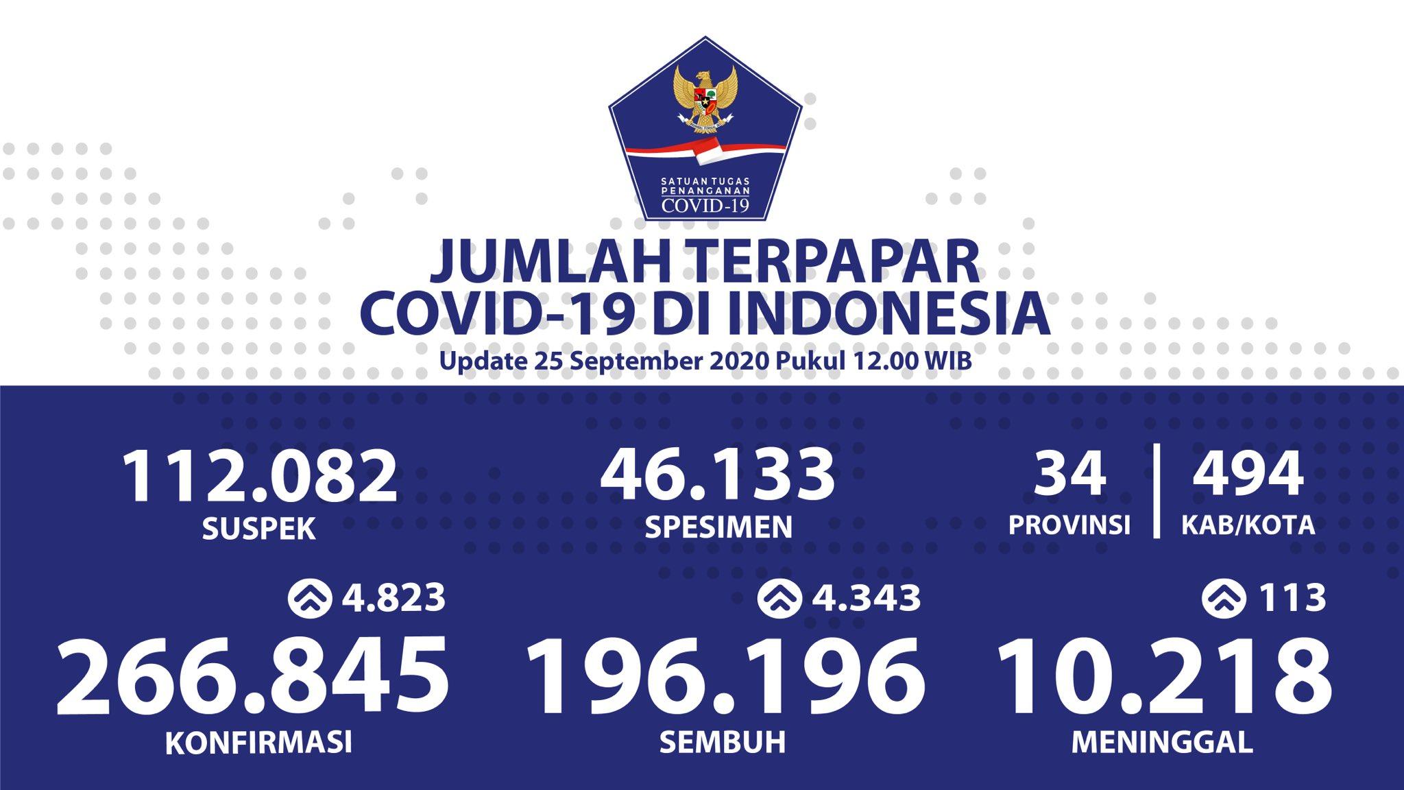 Baca: Update Corona di Indonesia 25 September: 266.845 Positif, 196.196 Sembuh, dan 10.218 Meninggal