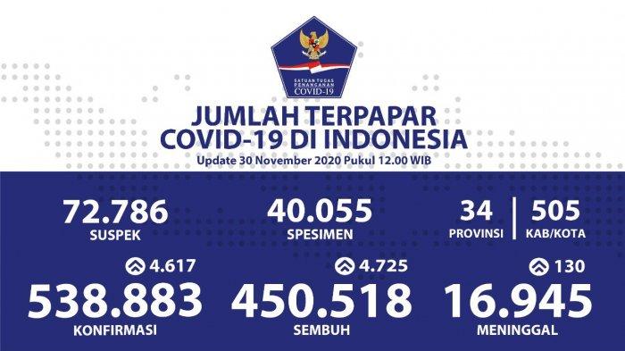 Baca juga: Update 30 November: Bertambah 4.617 Kasus, Total Konfirmasi Positif Covid-19 Capai 538 Ribu Orang