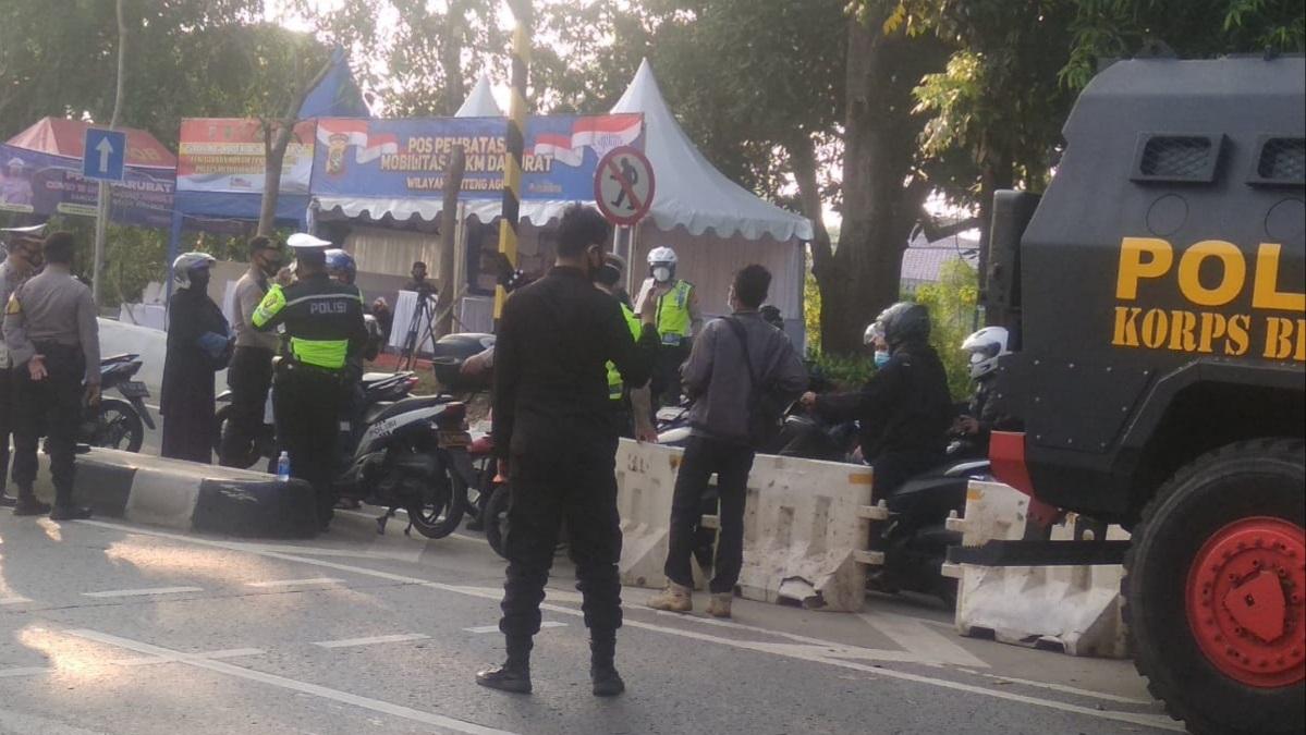Pantauan di lokasi, penutupan jalan menuju Jakarta dilakukan oleh petugas TNI-Polri sejak pukul 06.00 WIB.