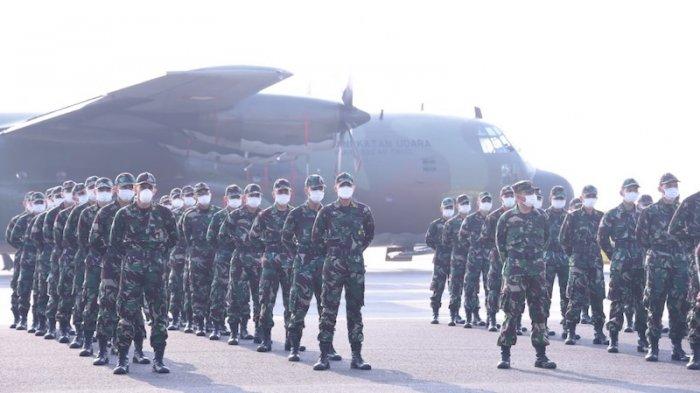 Sebanyak 122 Nakes Prajurit Siswa Pa PK TNI tersebut diberangkatkan dengan menggunakan 2 pesawat Hercules C130 TNI AU dari Lanud Halim Perdanakusuma, Jakarta Timur pada Senin (9/8/2021).