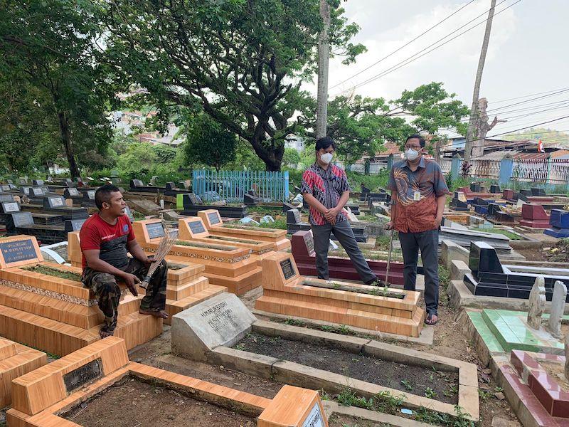 Selain berdialog dengan para nakes di Puskesmas dan Rumah Sakit, tim KSP juga melakukan peninjauan langsung ke Tempat Pemakaman Umum (TPU) Kebun Jahe di Kota Bandar Lampung.
