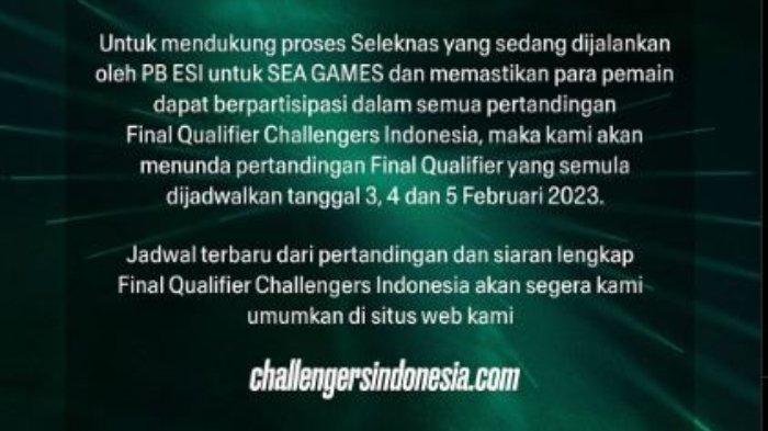 TRIBUNNEWS.COM - Turnamen Valorant Challengers Indonesia Split 1 2023 resmi menunda beberapa laga.