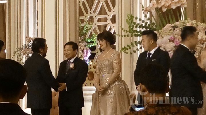 Ketua DPR RI Setya Novanto menerima ucapan selamat dari rekannya saat pernikahan putrinya Dwina Michaella dengan Jason Harjono di Hotel Mulia, Jakarta, Jumat (4/12/2015). TRIBUNNEWS/ABDUL QODIR