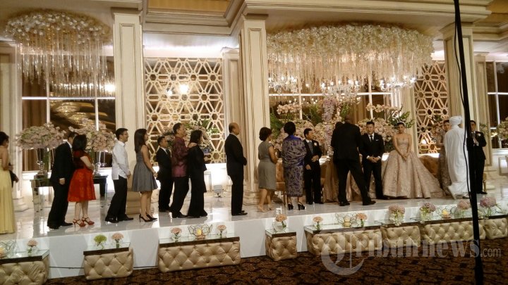 Ketua DPR RI Setya Novanto menerima ucapan selamat dari rekannya saat pernikahan putrinya Dwina Michaella dengan Jason Harjono di Hotel Mulia, Jakarta, Jumat (4/12/2015). TRIBUNNEWS/ABDUL QODIR