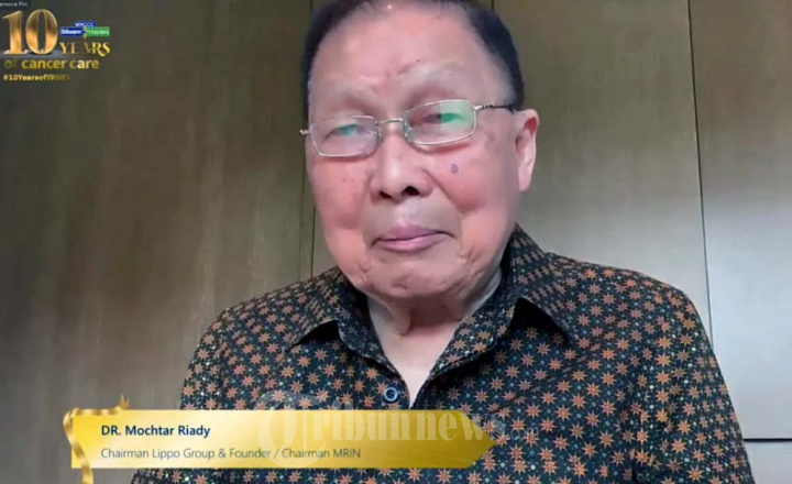 Pendiri MRCCC Siloam Hospitals dan Lippo Group Dr. Mochtar Riady memberikan sambutan saat perayaan HUT Ke-10 MRCCC Siloam Hospitals yang digelar secara virtual, Jakarta, Minggu (25/7/2021). Di Perayaan ini juga, MRCCC Siloam Hospital menerima penghargaan dari MURI atas pencapaiannya dalam menggelar webinar medis pelayanan kanker secara berkesinambungan terlama. Webinar medis yang melibatkan dokter spesialis dari berbagai disiplin ilmu tersebut dilakukan sebanyak 5 kali dengan total 11 sesi dan merupakan yang pertama di Indonesia dalam menyuguhkan beragam materi edukasi bagi profesional medis guna penanganan penyakit kanker secara terpadu. TRIBUNNEWS.COM/IST