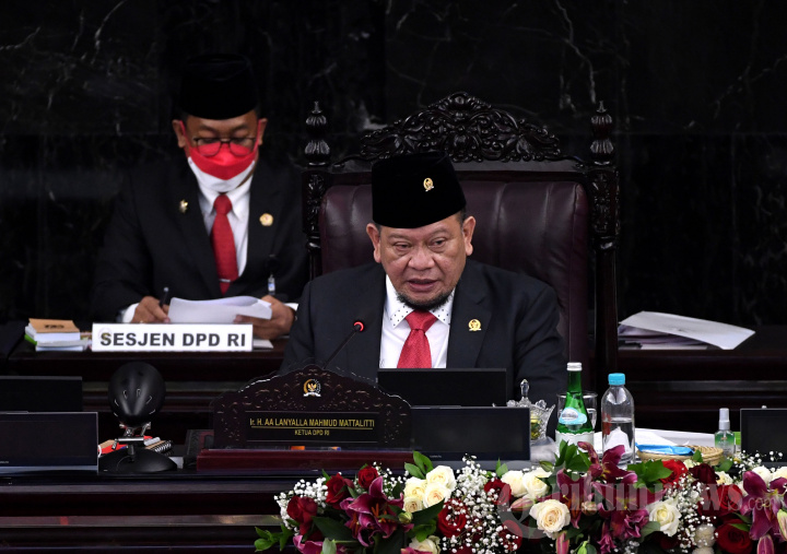 Ketua DPD RI, La Nyalla Mattalitti menghadiri Sidang Tahunan MPR RI dan Sidang Bersama DPR RI dan DPD RI, di Kompleks Parlemen, Senayan, Jakarta Pusat, Senin (16/8/2021). Dalam sidang tersebut, Presiden Joko Widodo menyampaikan pidato kenegaraan yang sekaligus dalam rangka HUT Ke-76 Kemerdekaan Republik Indonesia. Tribunnews/HO/Biro Pers Setpres/Lukas