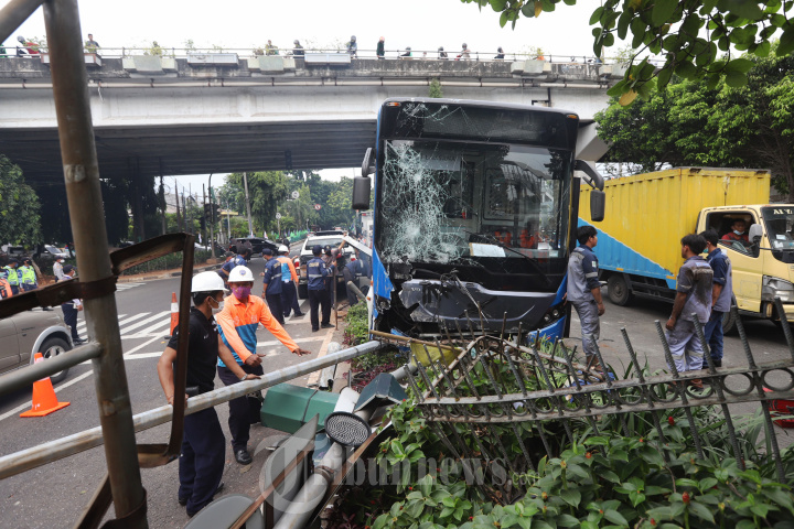 Bus TransJakarta Menambrak Pembatas Jalan