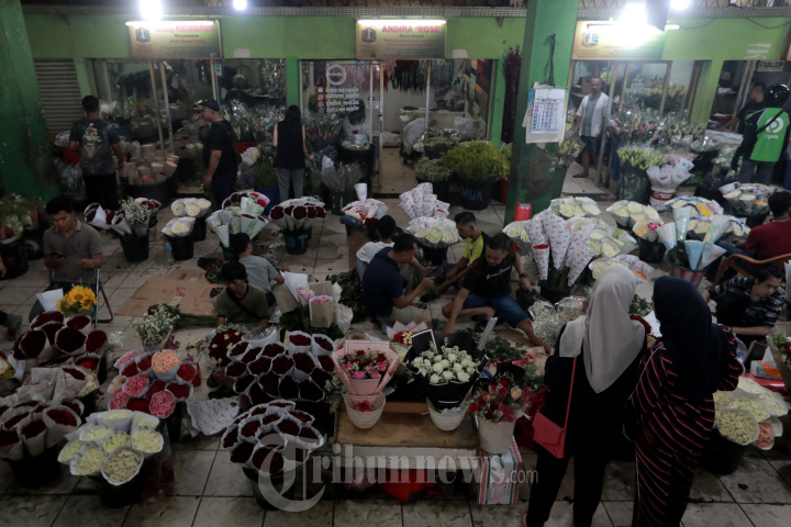 Pembeli memilih bunga di Pasar Rawa Belong, Jakarta, Minggu (13/2/2022). Menurut keterangan pedagang, jelang Hari Valentine omzet penjualan bunga di Pasar Rawa Belong mengalami penurunan dari biasanya, yang di karenakan meningkatnya angka COVID-19 varian Omicron. TRIBUNNEWS/IRWAN RISMAWAN