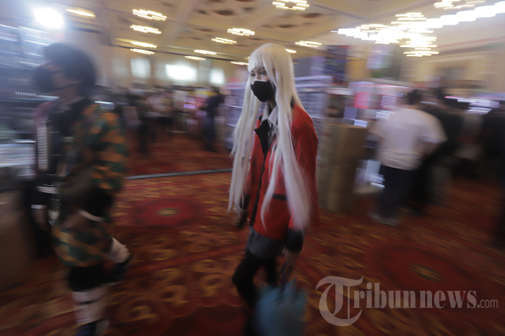 Cosplayer menjadi daya tarik pada acara Jakarta Toys and Comics Fair 2022 di Balai Sudirman Jakarta, Sabtu (5/3/2022). Acara yang sempat vakum selama dua tahun akibat pandemi Covid-19 kembali digelar dengan protokol kesehatan ketat dan menjadi penghilang dahaga para pehobi mainan koleksi dan komik skala internasional serta cosplayer. Acara tersebut digelar selama dua hari pada 5 dan 6 Maret 2022. TRIBUNNEWS/HERUDIN