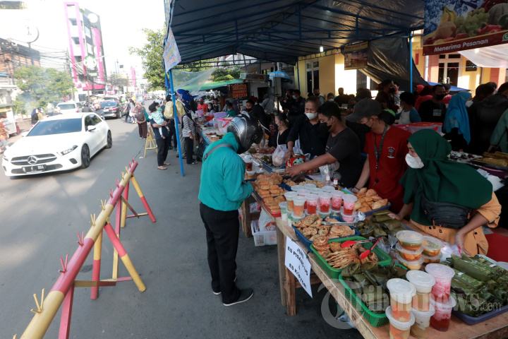 Warga memilih takjil atau makanan berbuka puasa di kawasan Bendungan Hilir (Benhil), Jakarta Pusat, Senin (4/4/2022). Kawasan Benhil menjadi tempat warga atau pekerja berburu takjil atau makanan berbuka puasa di setiap Bulan Ramadan. TRIBUNNEWS/IRWAN RISMAWAN