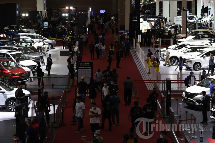 Sejumlah pegunjung melihat-lihat kendaraan roda empat yang dipamerkan pada ajang Indonesia International Motor Show (IIMS) Hybrid 2022 di JIExpo, Kemayoran, Jakarta Pusat, Rabu (6/4/2022). IIMS Hybrid 2022 diikuti oleh 12 brand kendaraan roda empat, seperti Toyota, Honda, BMW, Chery, DFSK, HyMitsubishi, Suzuki, dan Wuling. Selain itu, ada importir umum Prestige Motorcars yang akan menghadirkan mobil listrik Tesla. Ajang pameran otomotif ini ditargetkan mampu meraup jumlah transaksi yang lebih tinggi dibandingkan tahun sebelumnya. Tribunnews/Jeprima
