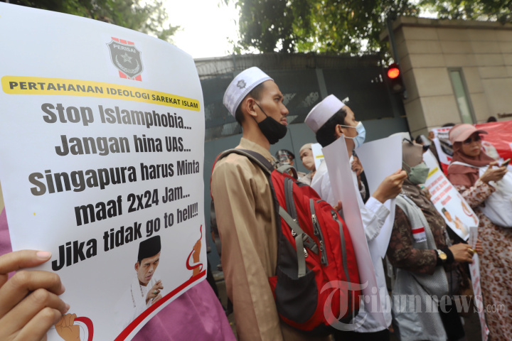 Pendukung UAS Demo di Depan Kedubes Singapura