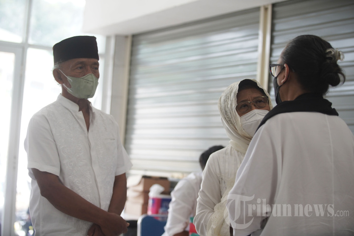 Istri aktor senior Rudy Salam, Marina Gardena (kanan) berbincang dengan kerabat di Rumah Duka PGI Cikini, Jakarta, Jumat (18/11/2022). Rudy Salam meninggal di usia 73 tahun akibat sakit di RS Harum pada pukul 06.04 WIB. TRIBUNNEWS/HERUDIN