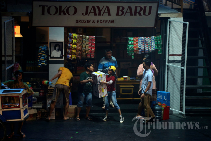 Pemeran mementaskan Teater Musikal Cek Toko Sebelah di Teater Jakarta Taman Ismail Marzuki, Jumat (9/12/2022). Pementasan yang merupakan kolaborasi Ernest Prakasa dengan Jakarta Movin dan didukung www.indonesiakaya.com ini akan berlangsung pada Jumat-Minggu, 9-11 Desember 2022. TRIBUNNEWS/IRWAN RISMAWAN