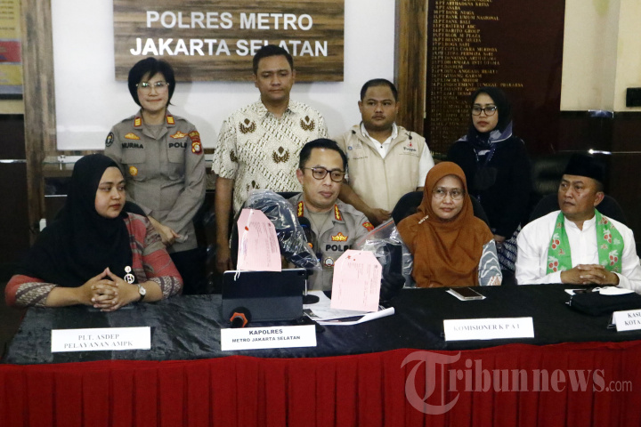Kapolres Metro Jakarta Selatan, Kombes Pol Ade Ary Syam (depan, kedua kiri) menunjukkan sejumlah barang bukti saat memberikan keterangan terkait penetapan Shane Lukas (19), teman dari Mario Dandy Satriyo (MDS, 20), sebagai tersangka dalam kasus penganiayaan anak Pengurus GP Ansor, Cristalino David Ozora (17), dalam jumpa pers di Mapolres Metro Jakarta Selatan, Kebayoran Baru, Jumat (24/2/2023). Shane Lukas terbukti bersalah karena telah membiarkan adanya kekerasan dan memprovokasi MDS untuk menganiaya David. Pada kesempatan tersebut, Polres Metro Jakarta Selatan juga menunjukkan sejumlah barang bukti di antaranya satu buah handpone, satu buah celana panjang warna hitam, dan baju lengan pendek warna biru dongker milik tersangka. WARTA KOTA/YULIANTO