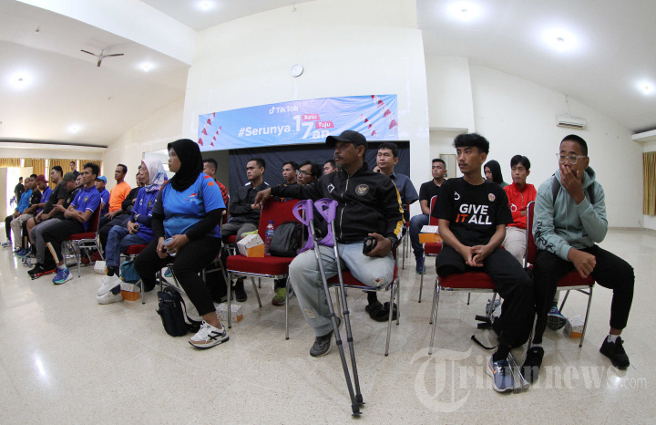Penyandang Disabilitas mengikuti sharing session Pejuang Prestasi yang digelar oleh TikTok di Yayasan Pamentas, Jakarta, Minggu (13/8/2023). Kegiatan ini merupakan bagian dari kampanye #Serunya17an milik TikTok dalam rangka perayaan HUT RI yang ke-78. Diharapkan sharing session ini dapat memantik semangat juang para atlet untuk ikut berprestasi demi Indonesia yang lebih baik. (WARTAKOTA/Angga Bhagya Nugraha)