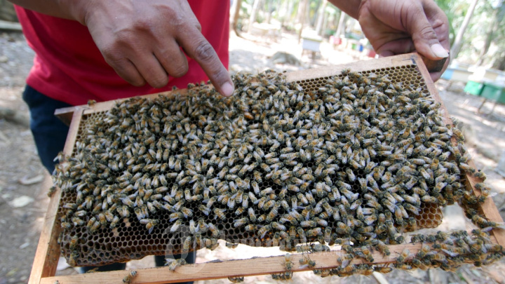 TRIBUNNEWS.COM, SEMARANG - Sejumlah petani mitra binaan PT Jamkrindo yang memproduksi madu, beraktivitas di lokasi budi daya lebah di Tuntang, Kabupaten Semarang, Jawa Tengah, Selasa (29/8/2023). Mereka memanfaatkan program pemberdayaan Jamkrindo melalui pendanaan usaha mikro dan kecil,(PUMK) untuk mengembangkan skala bisnis. //HO