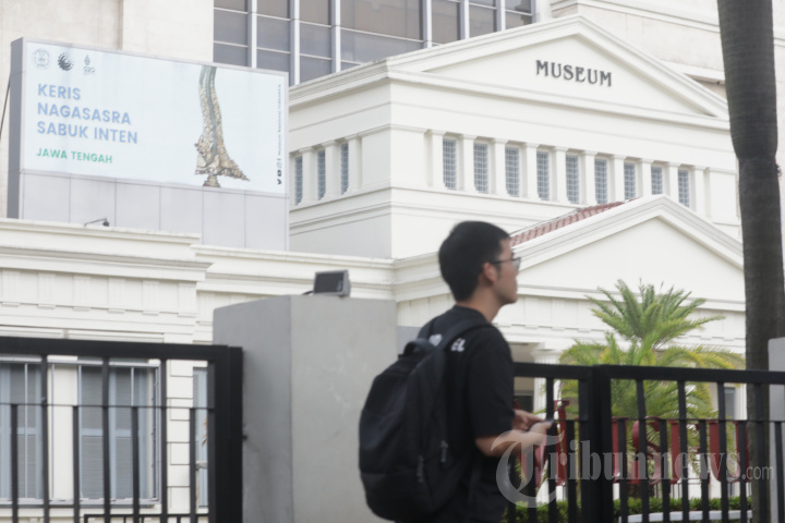 Suasana Museum Nasional pasca kebakaran di Jakarta, Minggu (17/9/2023). Museum Nasional masih ditutup untuk umum pasca kebakaran yang melahap Gedung A Museum Nasional yang terjadi pada Sabtu (16/9/2023) malam yang diduga disebabkan oleh korsleting arus listrik dari bedeng proyek renovasi. TRIBUNNEWS/IRWAN RISMAWAN