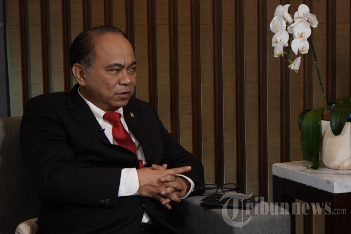 Menteri Komunikasi dan Informatika Budi Arie Setiadi saat wawancara dengan Direktur Pemberitaan Tribun Network Febby Mahendra Putra, di Kantor Kementerian Komunikasi dan Informatika RI, Jakarta Pusat, Kamis (05/10/2023). Keduanya membahas seputar pemberantasan judi online hingga pengoperasian satelit internet Starlink yang rencananya akan dilakukan secara komersil pada tahun 2024 mendatang. TRIBUNNEWS/RIDHO HENDRIKOS