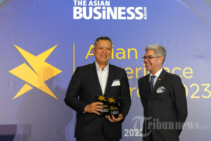 Direktur Institutional Banking Bank BTN Hakim Putratama (kiri) menerima penghargaan dari Contributing Editor Charlton Media Group (CMG) Singapore Simon Hyett (kanan) dalam ajang The Asian Experience Award 2023 yang diselenggarakan The Asian Business Review di Singapura, Kamis (05/10/2023) Malam. Dalam ajang tersebut Bank BTN meraih dua penghargaan pada ketegori Indonesia Service Experience of the Year atas transformasi layanan kredit dan Indonesia Partner Experience of the Year atas transformasi layanan nasabah dengan digital ekosistem perumahan yang dibangun perseroan. TRIBUNNEWS/HO