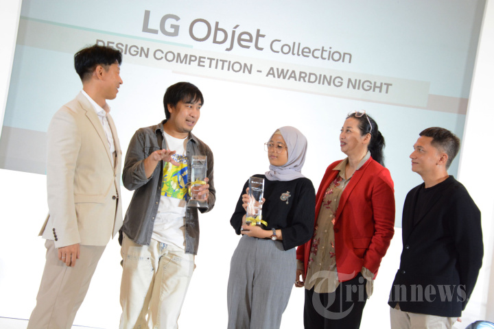 Marketing and Relations Director of LG Electronics Indonesia Jay Jang bersama Perwakilan Himpunan Desainer Interior Indonesia (HDII) Jakarta Diana Nazir dan Perwakilan Ikatan Arsitek Indonesia (IAI) Jakarta, Novriansyah Yakub (kanan) sebagai juri foto bersama dengan pemenang LG Objet Collection desain competition, Jakarta, Senin (23/10/2024). LG Objet Collection ini diharapkan seluruh karya pemenang ini dapat menginspirasi bagi tumbuhnya desain dan tatanan sebuah hunian modern yang juga mengedepankan harmonisasi antara pengguna, ruang dan produk elektronik yang mendukung kesehariannya. TribunNews/HO
