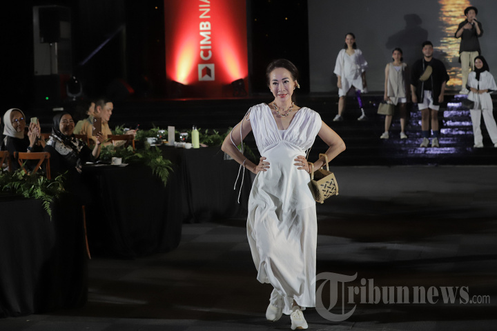 Direktur Compliance, Corporate Affairs and Legal CIMB Niaga Fransiska Oei mengikuti fashion show dalam rangkaian acara Media Gathering Kejar Mimpi Actionation di Jakarta, Rabu (8/11/2023). Acara Media Gathering ini juga dirangkai dengan Fashion Show yang menampilkan karya dari sustainable merchants seperti Kokaind, Sisa Benang, Kamu Wear, O2 Active, serta beragam asesoris dari Rubysh dan Rappo. Adapun Kejar Mimpi Actionation akan dilaksanakan di Pos Bloc, Jakarta, Sabtu, 11 November 2023. Mengusung tema Festival Penuh Aksi untuk Kejar Mimpi, acara akan menghadirkan beragam keseruan mulai dari talkshow, workshop, promo eksklusif, pameran produk lokal dari para pelaku UMKM yang fokus terhadap sustainability, dan Music Performance salah satu band terbaik Indonesia RAN. Tribunnews/Jeprima