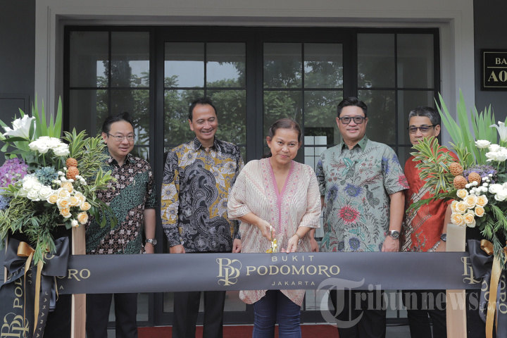 Chief Marketing Officer Bukit Podomoro Jakarta Zaldy Wihardja, Corporate Marketing Director PT Agung Podomoro Land Tbk. Agung Wirajaya, Corporate Operation Director PT Agung Podomoro Land Tbk Paul Christian, dan Chief Operating Office Inner City Management Krisdiarto Adi Pranoto menyaksikan konsumen menggunting pita tanda serah terima Ruko Bukit Avenue di Bukit Podomoro Jakarta, Jakarta Timur, Sabtu (15/12/2023). Ruko Bukit Avenue yang merupakan bagian dari Bukit Podomoro Business Park dirancang sebagai The Most Exclusive Shophouse in East Jakarta, yang bertujuan untuk memenuhi kebutuhan konsumen serta mendorong pertumbuhan bisnis baru di wilayah Jakarta Timur dan sekitarnya. Tribunnews/Jeprima