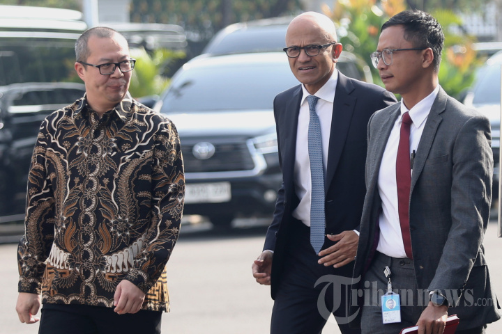 CEO Microsoft Satya Nadella berjalan sebelum bertemu dengan Presiden Joko Widodo di Kompleks Istana Kepresidenan, Jakarta, Selasa (30/4/2024). Pertemuan tersebut membahas rencana investasi Microsoft mengembangkan infrastruktur teknologi kecerdasan buatan (artificial intelligence) dan komputasi awan (cloud) di Indonesia. TRIBUNNEWS/IRWAN RISMAWAN