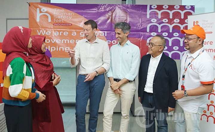 Tim global The Human Safety Net (THSN) Yves Carbonnelle selaku Global Engagement & Communication, Alan Barbieri selaku Head of Programmes bersama tim Generali Indonesia Rully Safari selaku Head of Human Capital didampingi Windra Krismansyah selaku Head of Corporate Communications sekaligus Program Manager THSN Indonesia dan tim Komunitas Ibu Profesional Septi Peni Wulandani sebagai Founder serta Ara Kusuma sebagai Partnership Consultant berbincang disela-sela acara skilled volunteering yang menjadi bagian dari program THSN Indonesia di Generali Tower, Jakarta, Kamis (30/5/2024). Melalui gerakan The Human Safety Net Indonesia menitikberatkan pada dampak sosial dan pengembangan masyarakat secara berkelanjutan. Salah satunya adalah dengan program skilled volunteering, dimana Generali Indonesia mengajak partisipasi aktif para karyawan untuk terlibat dengan membagikan keterampilan atau skill kepada komunitas Ibu Profesional. Tribunnews/Jeprima