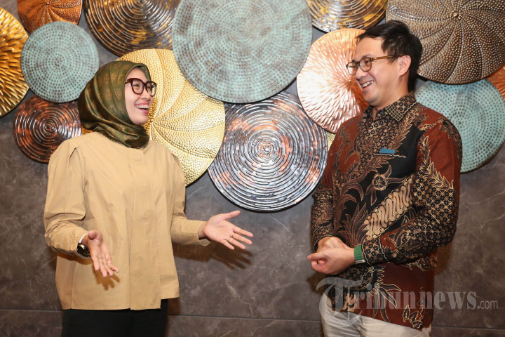 Executive Vice President Umum dan Aset Properti PT PLN (Persero) Arsyadany Ghana Akmalaputri (kiri) berbincang dengan Chief of Public Policy and Government Relations GoTo Group Ade Mulya (kanan) usai seremonial penandatanganan nota kesepahaman antara GoTo Group dan PLN Group yang bertempat di Kantor PLN Pusat, Jakarta (30/5/2024). Kolaborasi tersebut dilaksanakan dalam rangka penyediaan transportasi dinas di lingkungan PLN Group melalui layanan GoCorp. Layanan GoCorp dirancang khusus untuk memenuhi kebutuhan korporasi atas berbagai tantangan dalam proses business expense management. TRIBUNNEWS/HO