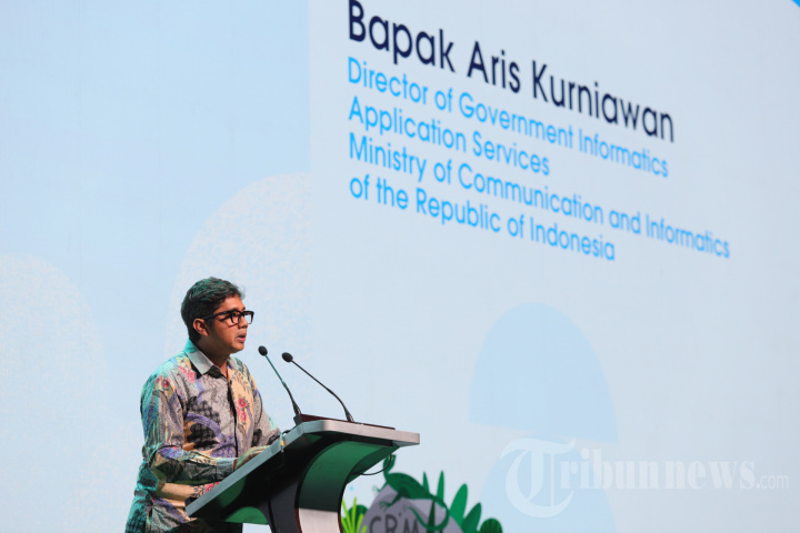 Plt. Direktur Layanan Aplikasi Informatika Pemerintahan Kementerian Komunikasi dan Informatika RI Aris Kurniawan saat memberikan pemaparan pada perhelatan Agentforce World Tour di Jakarta, Kamis (17/10/2024). Salesforce Perusahaan global di bidang Solusi CRM menawarkan strategi inovatif untuk memperdalam hubungan pelanggan, meningkatkan produktivitas, dan memaksimalkan potensi bisnis melalui platform terintegrasi yang menggabungkan CRM, AI, Data, dan juga Kepercayaan di ajang Agentforce World Tour Jakarta. TRIBUNNEWS/HO