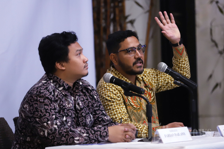 SURVEI LSI - Peneliti Lingkaran Survei Indonesia (LSI) Denny JA, Ikrama Masloman didampingi moderator Farhan Dailamy memaparkan hasil temuan dan survei nasional bertema Berharap Prabowo Menjadi Bapak Pemberantas Korupsi di Indonesia saat jumpa pers di Jakarta, Senin (17/3/2025). LSI menyebut Prabowo akan berhasil membawa Indonesia menjadi negara maju, jika berhasil menaikkan Indeks Tata Kelola Pemerintahan (GGI) dari 53,17 ke 70,00. Bila ini terwujud maka pemerintahan akan lebih bersih, rakyat lebih sejahtera dan sejarah akan mencatatnya sebagai era reformasi sejati. Pendiri LSI, Denny JA mengatakan, hanya Singapura, negara Asia yang masuk 10 besar dunia dengan GGI di posisi 87,23. Selebihnya 9 negara lain yang nilai GGI nya berada di 10 besar adalah negara negara Eropa. Tribunnews/Jeprima