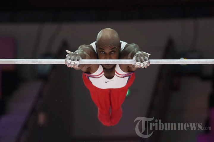 SESI LATIHAN - Atlet senam dunia melakukan latihan perdana sekaligus uji coba lapangan di Indonesia Arena komplek Gelora Bung Karno (GBK) Jakarta, Kamis (16/10/2025). Sejumlah atlet senam mulai menggelar sesi latihan menjelang Kejuaraan Dunia Senam Artistik FIG ke-53 2025 pada 19-25 Oktober 2025 di Indonesia Arena. TRIBUNNEWS/HERUDIN