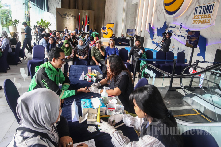 PENGOBATAN GRATIS - Petugas kesehatan memeriksa kesehatan warga saat penyelenggaraan pemeriksaan kesehatan dan pengobatan gratis di NasDem Tower, Jakarta, Sabtu (25/10/2025). Partai NasDem menggelar pemeriksaan Kesehatan dan pengobatan gratis untuk menyambut Hari Ulang Tahun ke-14 yang diikuti sekitar 350 warga dimana pemeriksaan kesehatan gratis ini yang meliputi cek asam urat, gula darah, dan kolesterol, serta pengobatan sesuai hasil pemeriksaan. TRIBUNNEWS/IRWAN RISMAWAN
