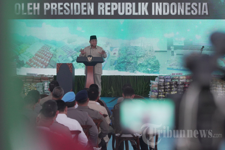 PEMUSNAHAN NARKOBA - Presiden Prabowo Subianto memberikan kata sambutan pada acara pemusnahan barang bukti narkoba dari berbagai jenis seberat 214,84 ton di Lapangan Bhayangkara Polri, Jakarta, Rabu (29/10/2025). Barang bukti narkoba seberat 214,84 ton yang diungkap selama periode satu tahun pemerintahan Presiden Prabowo Subianto, yakni sejak Oktober 2024 hingga Oktober 2025. Adapun estimasi nilai dari barang haram itu nilainya mencapai Rp 29,3 triliun. Acara pemusnahan barang bukti ini dihadiri Menkeu Purbaya Yudhi Sadewa, Wamenko Kumham Imipas Otto Hasibuan, Menteri Imipas Agus Andrianto, Mendagri Tito Karnavian, Menkum Supratman Andi Agtas, Menkomdigi Meutya Hafid, dan Kepala BGN Dadan Hindayana. Tribunnews/Jeprima